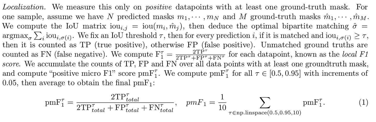 Localization (pmF1): How accurately the model segments the object pixels.