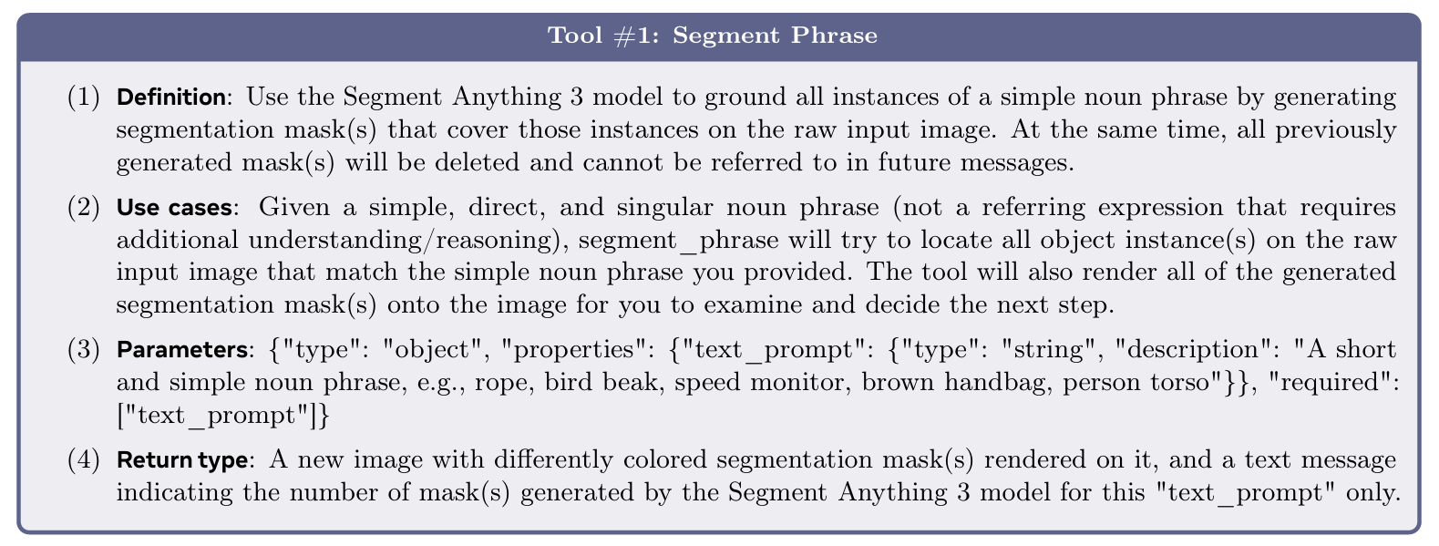We must first understand the new task it solves to understand SAM 3. The authors define Promptable Concept Segmentation (PCS) as a process that takes specific prompts as input and returns segmentation masks and unique identities for all matching object instances.