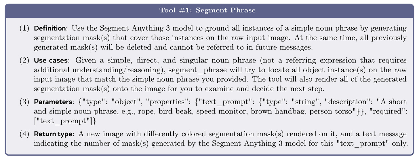 In this setup, the MLLM acts as a planner. If a user asks a reasoning-heavy question (segment the object that is used to cut food), the MLLM reasons that the object is a knife. It then prompts SAM 3 with the noun phrase “knife” to generate the mask.