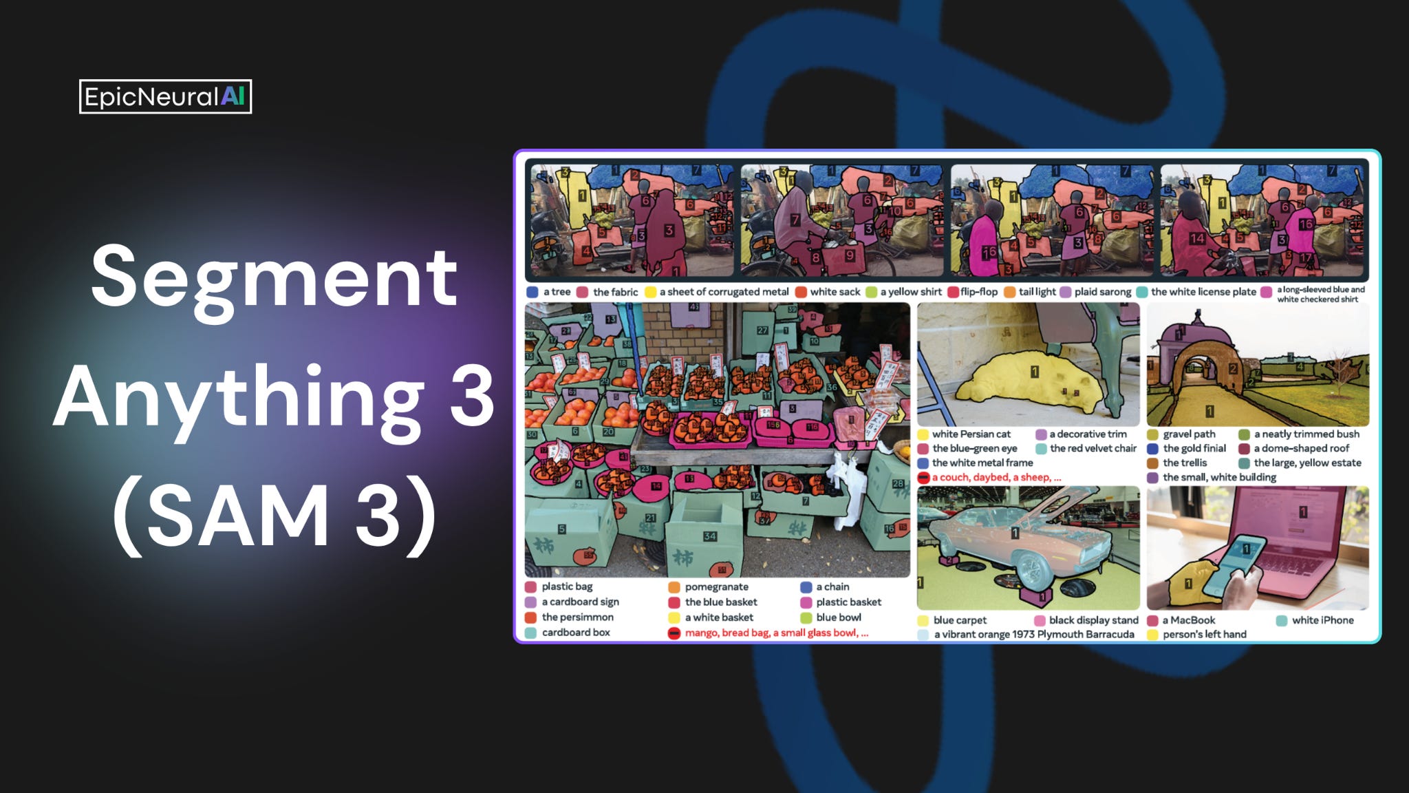 The ability to find and segment anything in a visual scene is foundational for multimodal AI. This capability powers essential applications across diverse fields, including robotics, content creation, augmented reality, data annotation, and broader sciences.