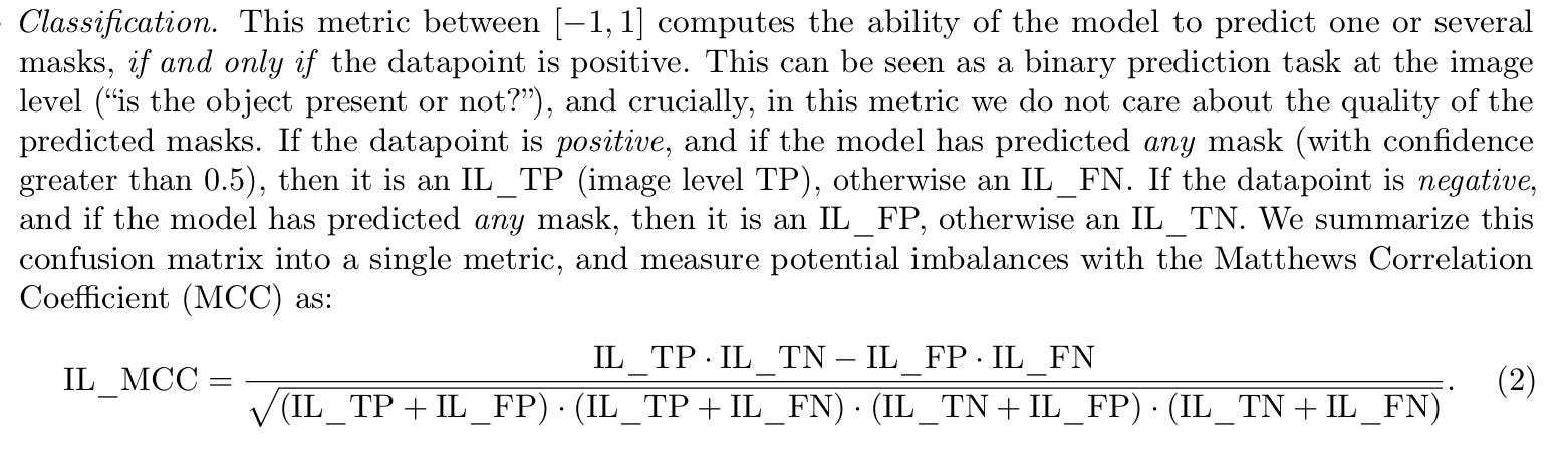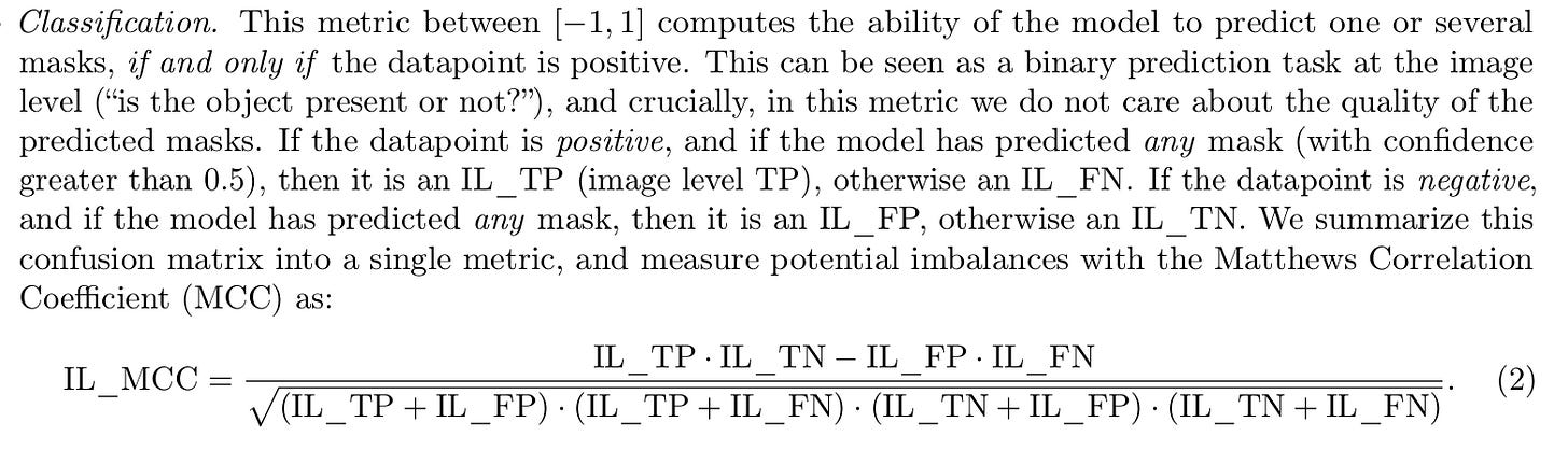 SAM 3 uses a composite metric called classification-gated F1 (cgF1). This metric is the product of two sub-scores: