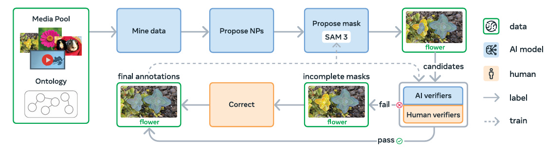 Most large datasets rely on homogenous web-scraped images. SAM 3’s engine curated diverse media domains to ensure the model was exposed to varied visual contexts beyond standard internet photos.
